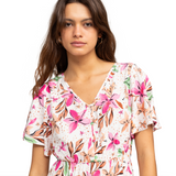 - Color blanco con estampado rosa y detalles verdes